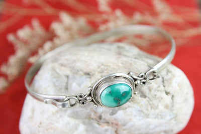 A dainty and elegant design, this solid .925 sterling silver bracelet features a distinct malachite stone. Malachite personifies the deep healing green of nature and represents the innate beauty of flowers, trees, roots and plants. It is a protection stone, absorbing negative energies and pollutants from the atmosphere and from the body.