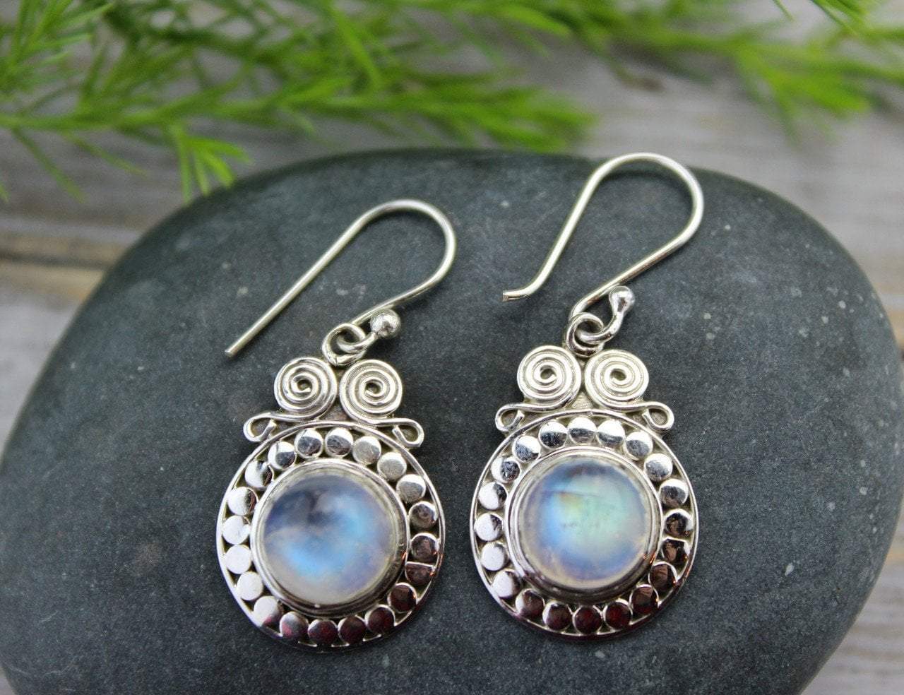 Sterling silver and opalite earrings hang 1 1/4 inches.