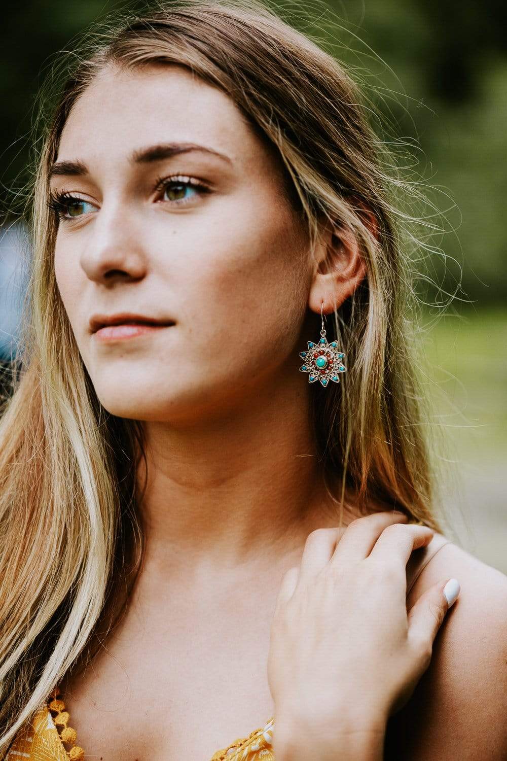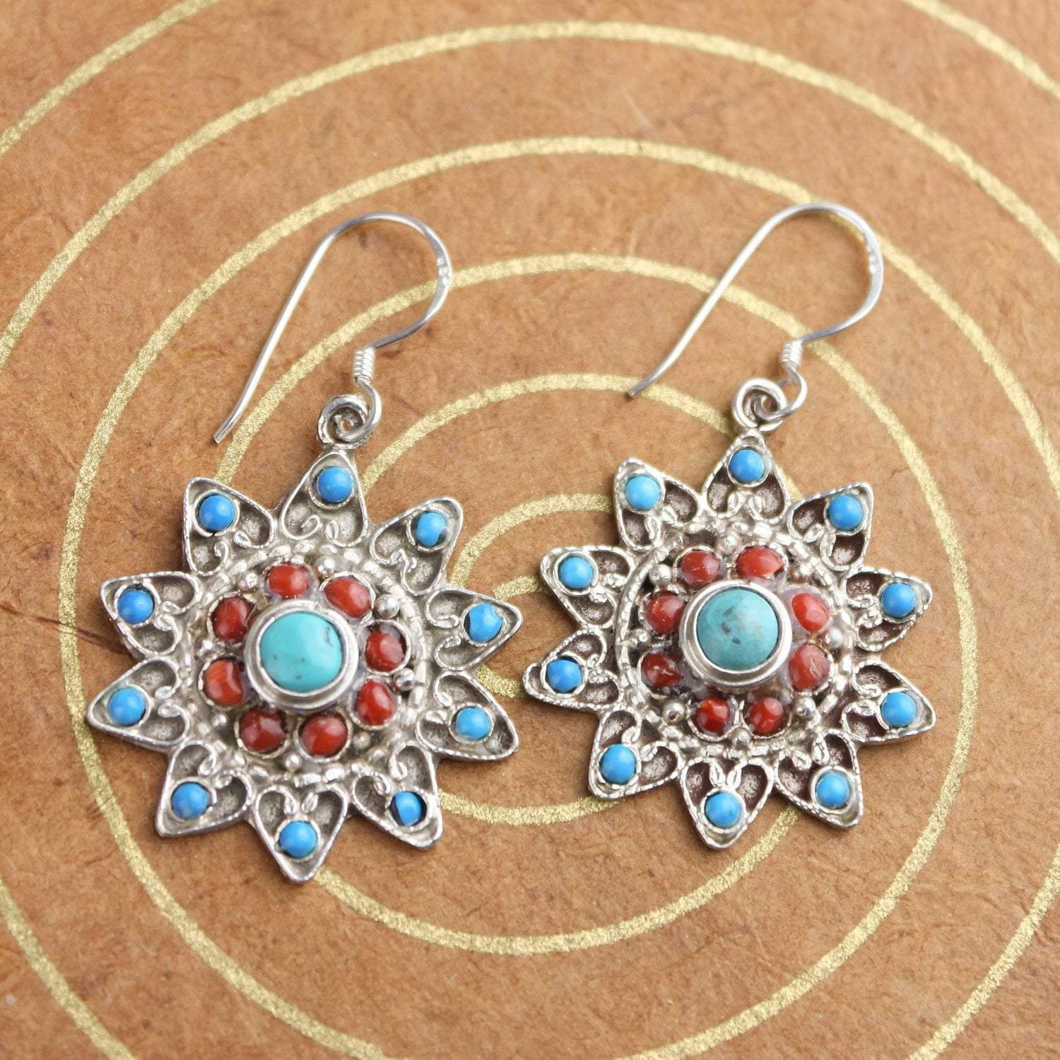 Earrings measure approximately 1 5/8 inch long from top of hooks and about 1 inch wide.