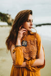 Tibetan dragons are protectors of Buddhism whose thunderous voices awaken us from delusion. The lotus flower represents purity and fortune. Lapis is said to promote self awareness, enlightenment and open the mind to all possibilities. It is also considered to be a powerful stone when used for mediation.