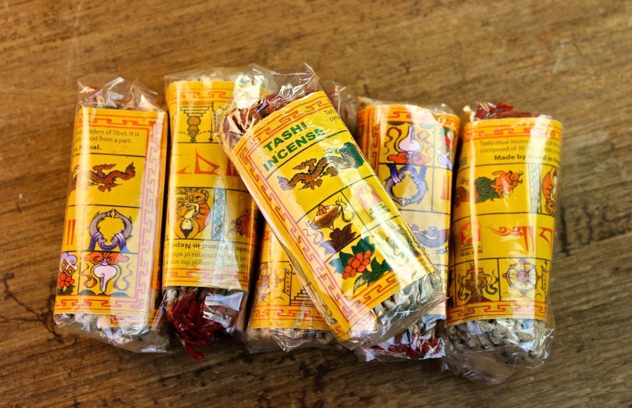 Tashi ritual incense is one of the ancient traditional arts of the monastic orders of Tibet. It is composed of 30 ingredients including saffron, nagi and red and white sandalwood. Burns very clean and light. Hand made in Nepal.