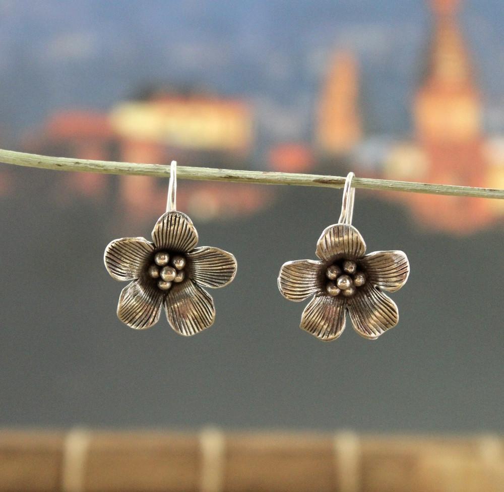 silver french hooks earrings Thai silver, 1 1/4 inches tall