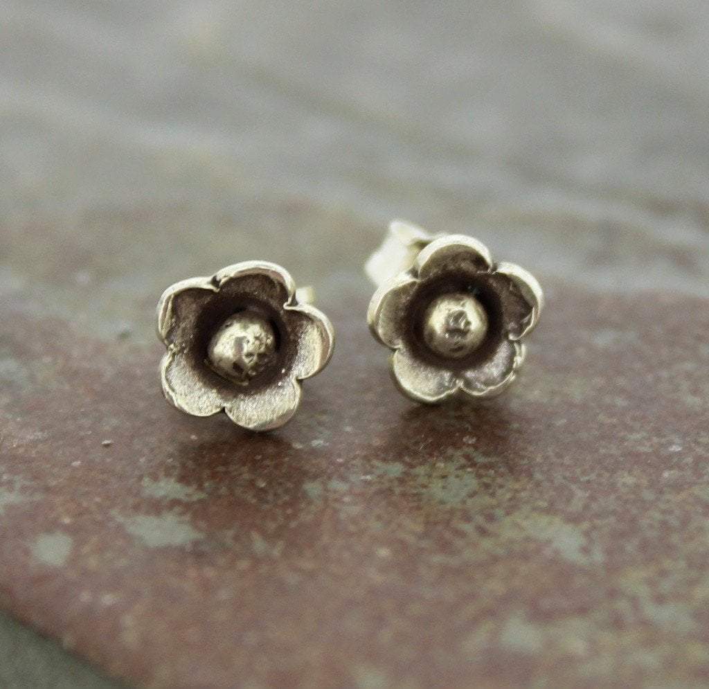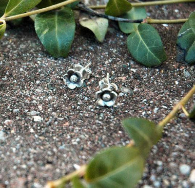 Hand made in Kathmandu Nepal. Thai silver flower post earrings. 5 centimeters tall.