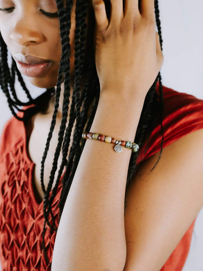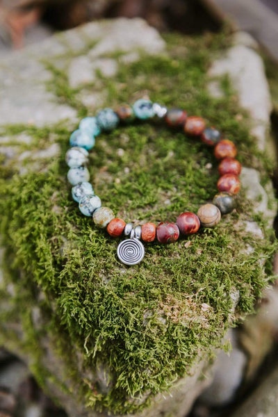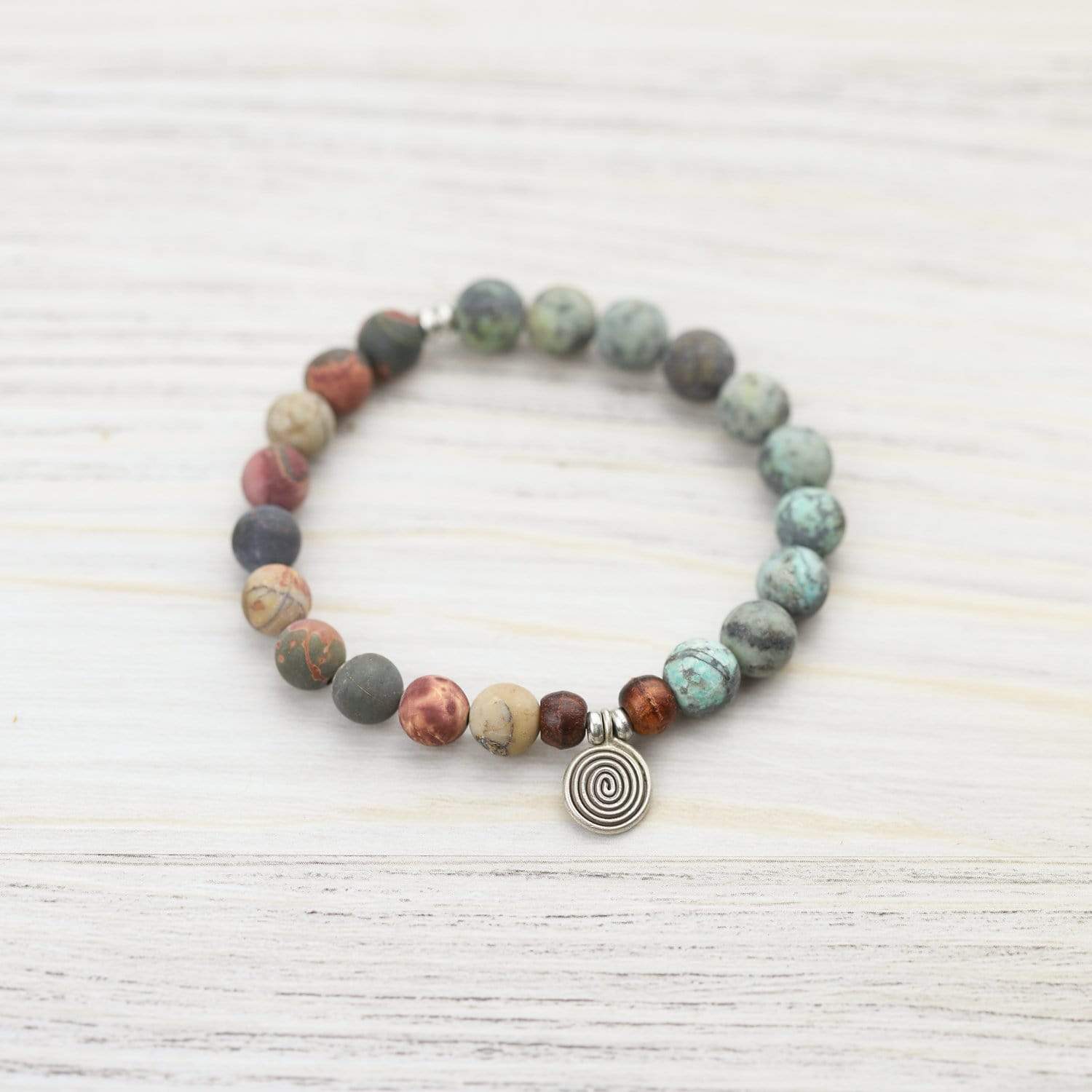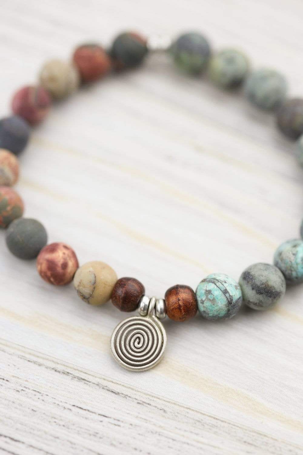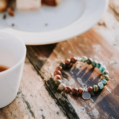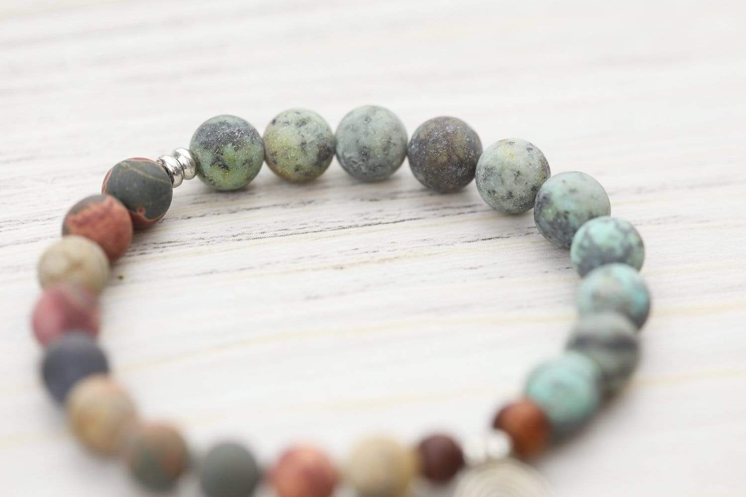 African turquoise encourages growth, development, and positive change within one's life. Riverstone's energy is said to accelerate change. It is very useful when performing meditation or therapy. Associated with the Heart Chakra, rosewood is known for its compassionate and healing energies.