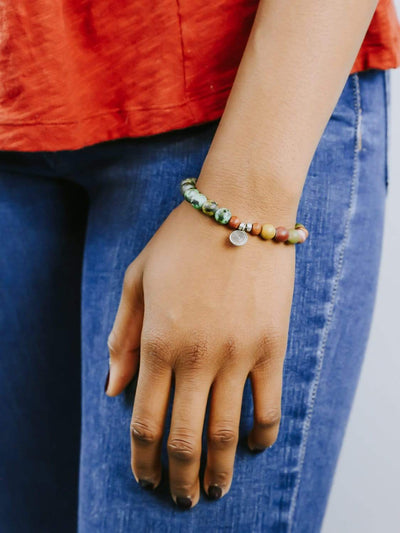 Bracelet measures approximately 6.5 inches around. Strung on durable stretchy cord in the US.