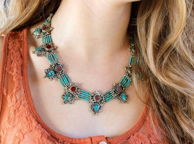 An extraordinary Tibetan coral and turquoise necklace. Designed and handmade for us by Karma Dolma in Kathmandu Nepal.