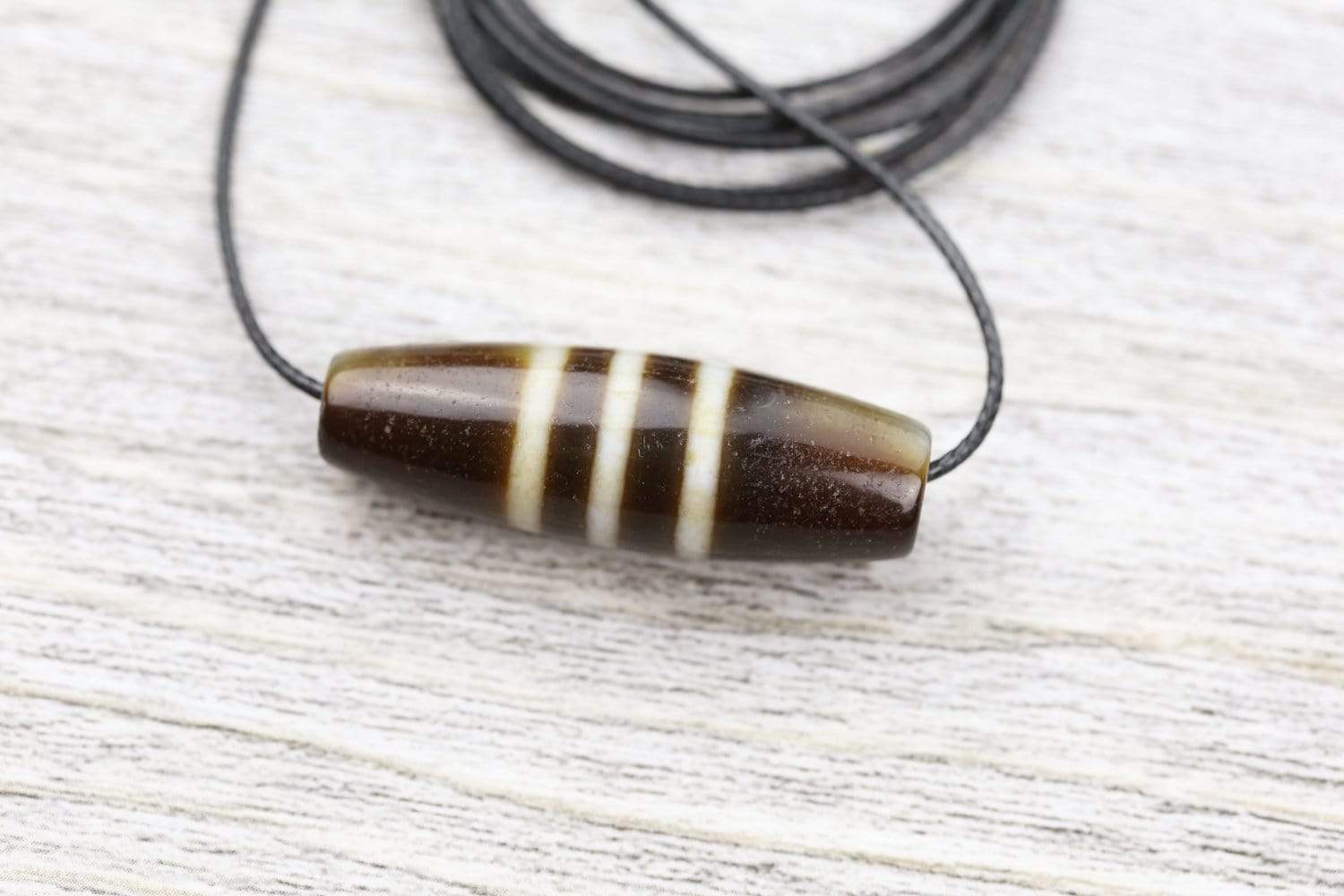 Dzi beads are believed to offer protection and prosperity to the wearer. The 3 stripe design represents multiple fortunes to be gained by the owner. If powered by love of ones self, this bead can offer a great journey.
