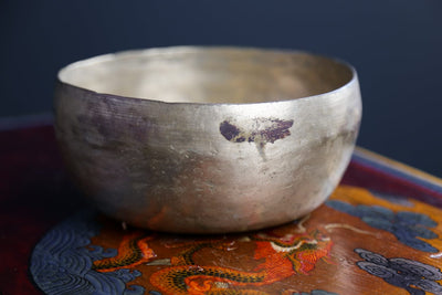 • The bowl was hand selected by the DharmaShop team in Nepal from a stunning and superior collection of antique bowls for their amazing quality of sound.