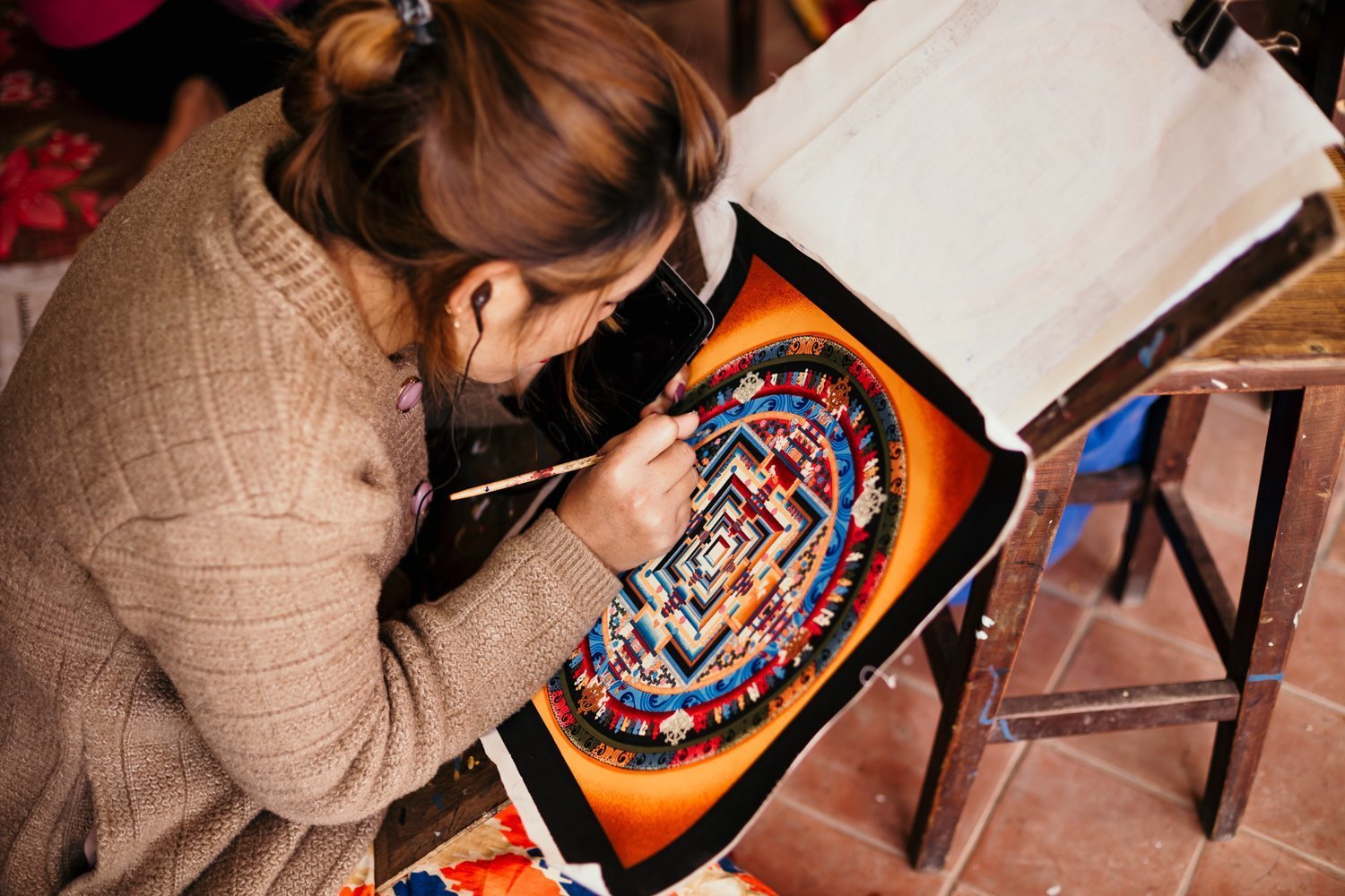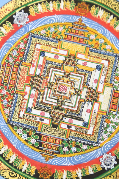 Each detail is painted by hand on cotton canvas using natural mineral and vegetable pigments with 24K gold accents. The intricate brushstrokes and extraordinary detail make these thangkas genuine works of art. It comes unframed and ready for Western style framing of your choosing.