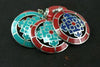 Over the years we have carried a lot of inlaid turquoise and coral pendants. I have rarely seen any that are this nice. These hand set stones are on a pure silver base and are made by a new supplier, a family that has been creating Tibetan jewelry for over 40 years. Each time I visit I hear a new story of Tibetan life in Kathmandu or Dharamsala, India, where the patriarch of the family lives.