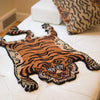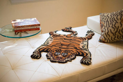 This one-of-a-kind Tibetan tiger carpet is the perfect addition to your home, office, or meditation space.  Made in the traditional manner, each design is cut by hand to create a 3-dimensional look that emulates a real tiger skin.  They are woven by hand on looms and feature 100 knots per square inch.  Tibetan carpets and tiger rugs are truly beautiful pieces of art known for their quality and longevity.