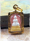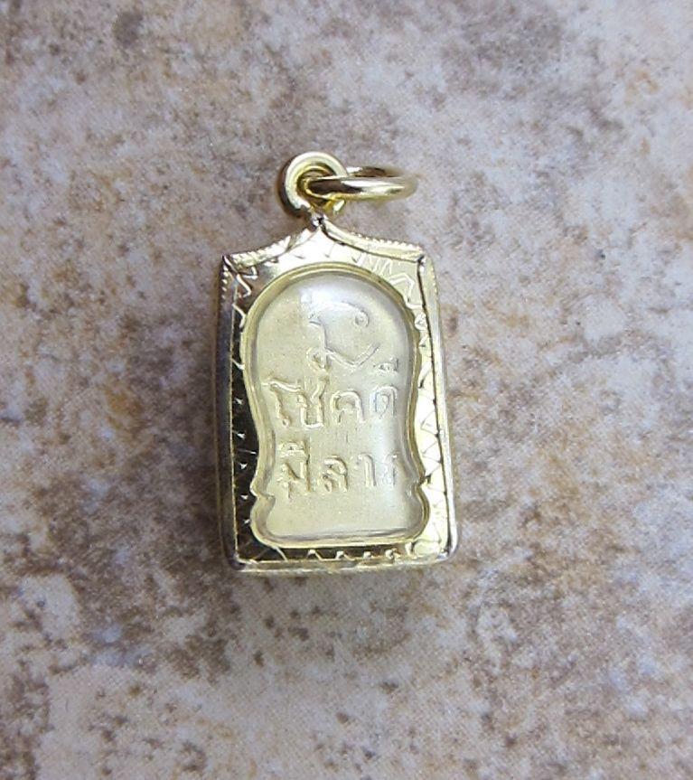 Just in from Bangkok Thailand! This charming little Thai amulet is wrapped in a gold plated case. These collectable amulets are found on every single person in Thailand. We found these near Wat Pho and donated to the temple where they were being sold by monks.