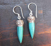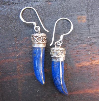 Traditional Tibetan Horn style earrings in lapis and solid sterling silver. Please write in your selection.Size:1 1/4 inch tall