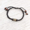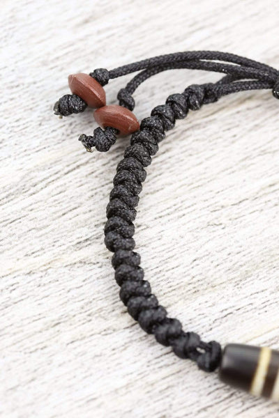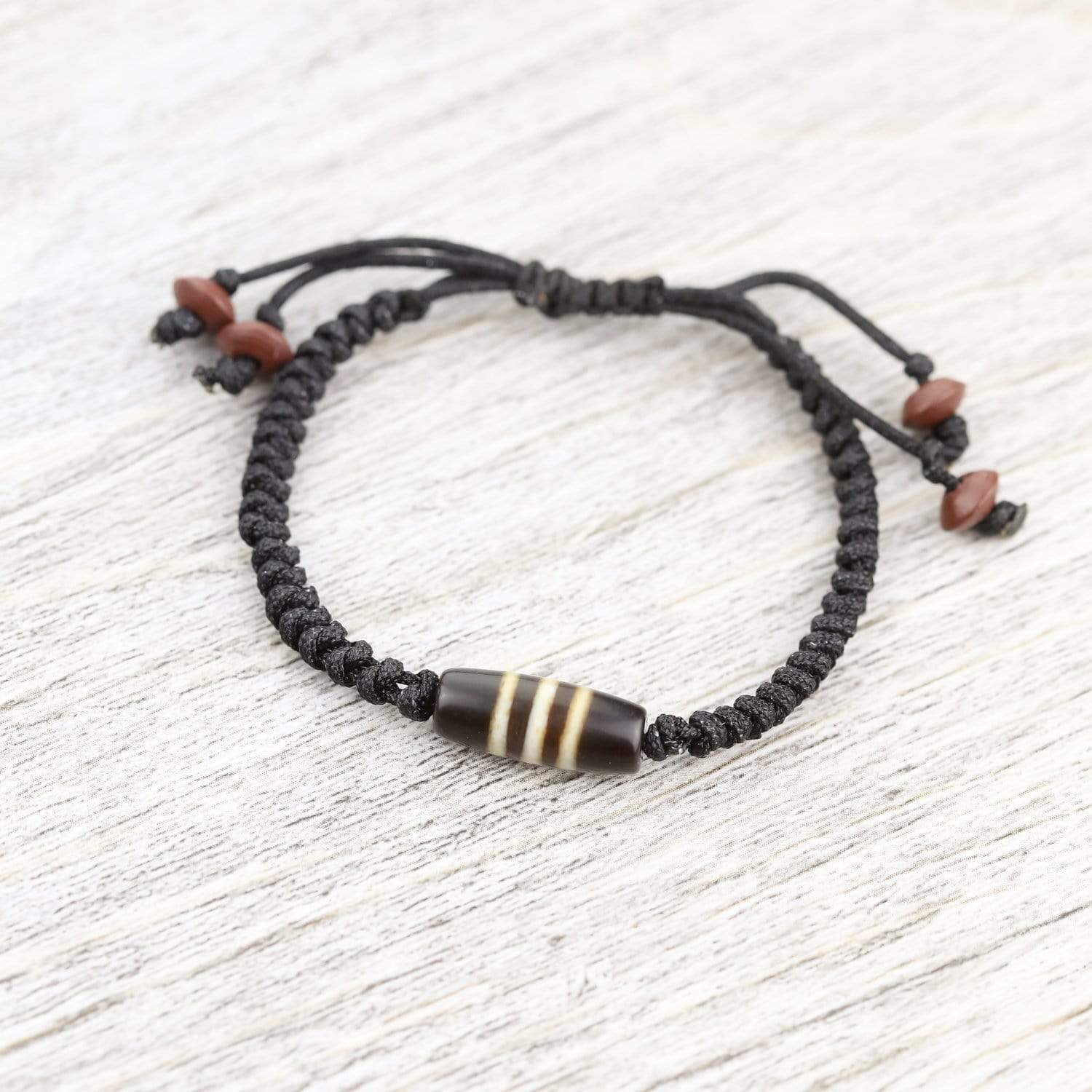 • The bracelet is entirely hand knotted on black cord with wood toggle beads and an adjustable knot.  The simple and traditional design is sure to make a bold statement.