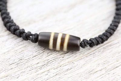 • This bold Dzi bead bracelet is one-of-a-kind and handmade by DharmaShop co-founder, Christy Cohen.  It features a true agate modern Dzi bead with 3 stripe design.