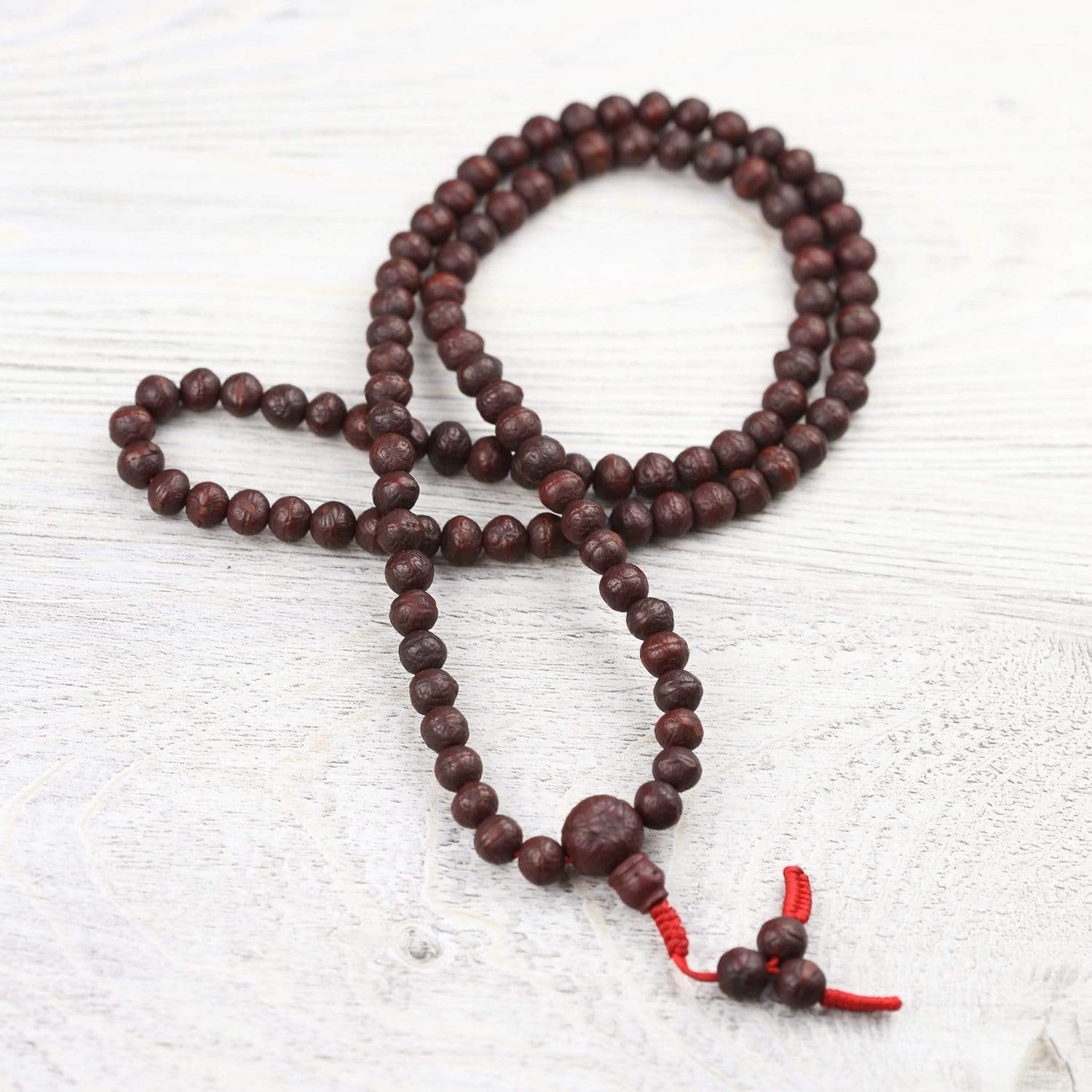This mala comes from our DharmaShop curated collection.  It comes from a small batch of antique bodhi seed malas that we sourced from one of our favorite Tibetan antique mala collectors in the ancient city of Bhaktapur.  Its energy and history is as vibrant and powerful as the city from which it came!  Each mala incredibly special and features high quality antique bodhi seed beads strung on bold red cord.