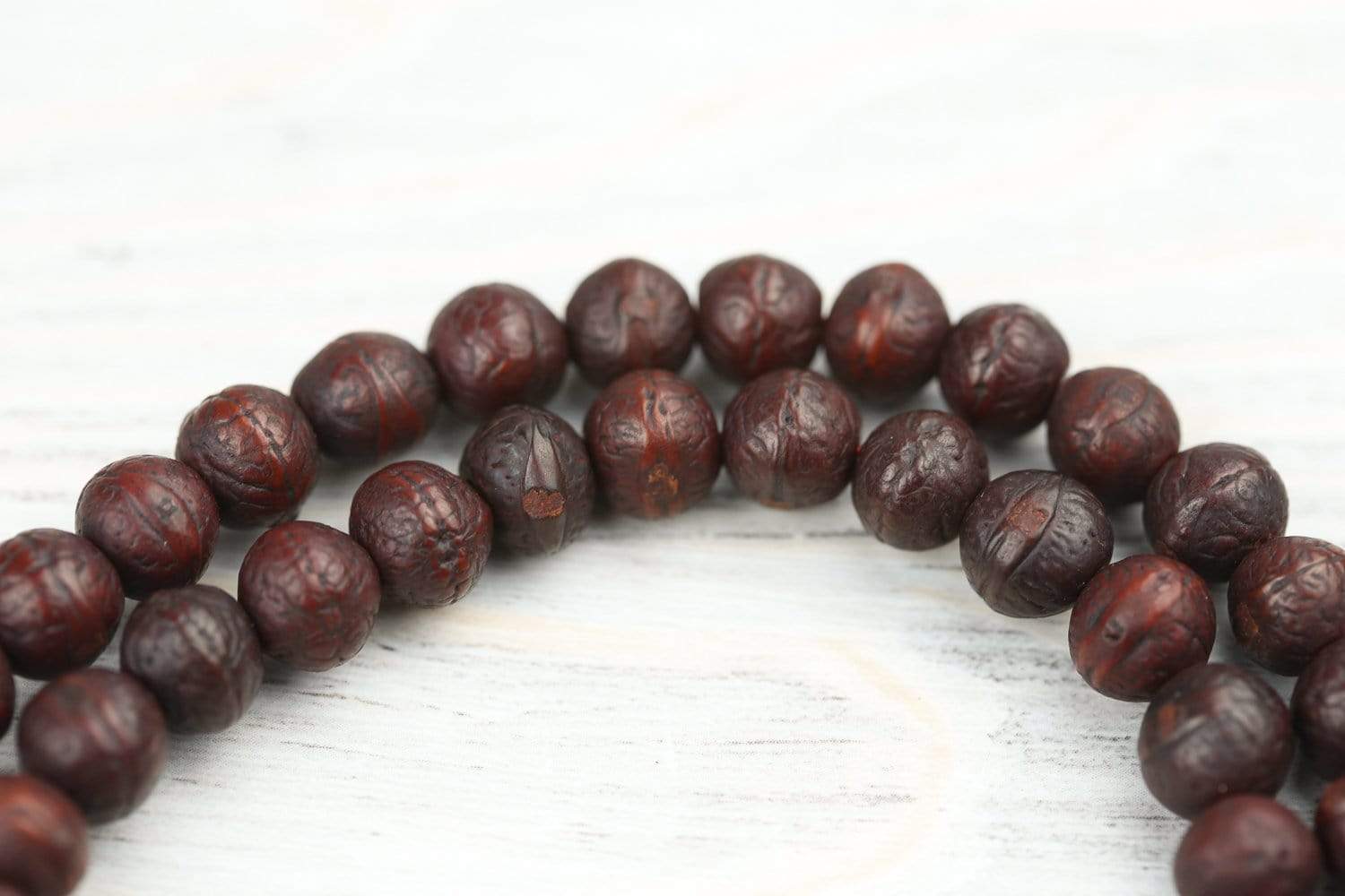 • These dark-speckled seed beads have special meaning for all seekers of divine wisdom.  "Bodhi" in Sanskrit means enlightenment; as an "enlightened" seed, many practitioners use these malas for their essence and inherent teachings within each seed.