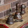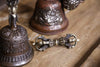 Case measures approximately 7 inches tall and 5 inches wide. Bell is about 6.5 inches tall and 3.25 inches wide. Dorje measures about 4 inches long.