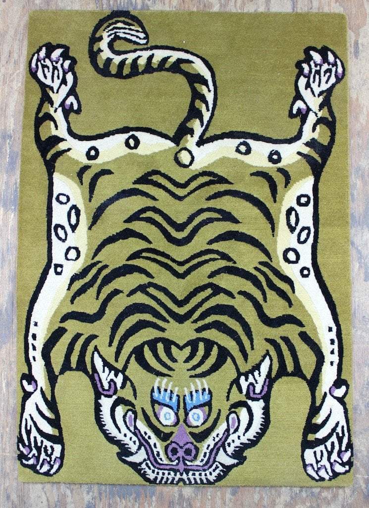 The tiger is known to symbolize unconditional confidence and disciplined awareness, kindness, and modesty. The tiger is associated with confidence, dominance over the forest, and the air element. Many Tibetans believe that meditating on a tiger carpet will protect you from negativity and enhance your meditation practice.
