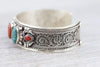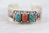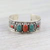 • Handmade of sterling silver with amazing filagree details that take a considerable amount of time and skill to create.  Gorgeous true turquoise and antique coral stones serve as the centerpieces to this beautiful cuff.