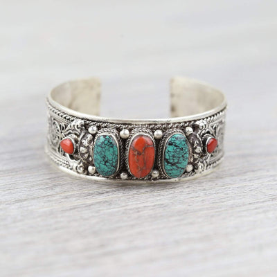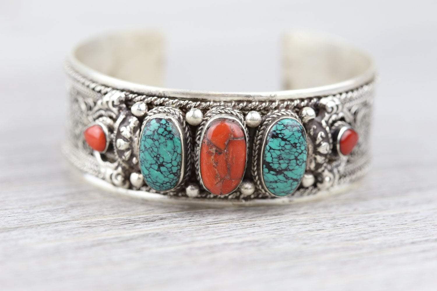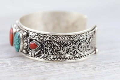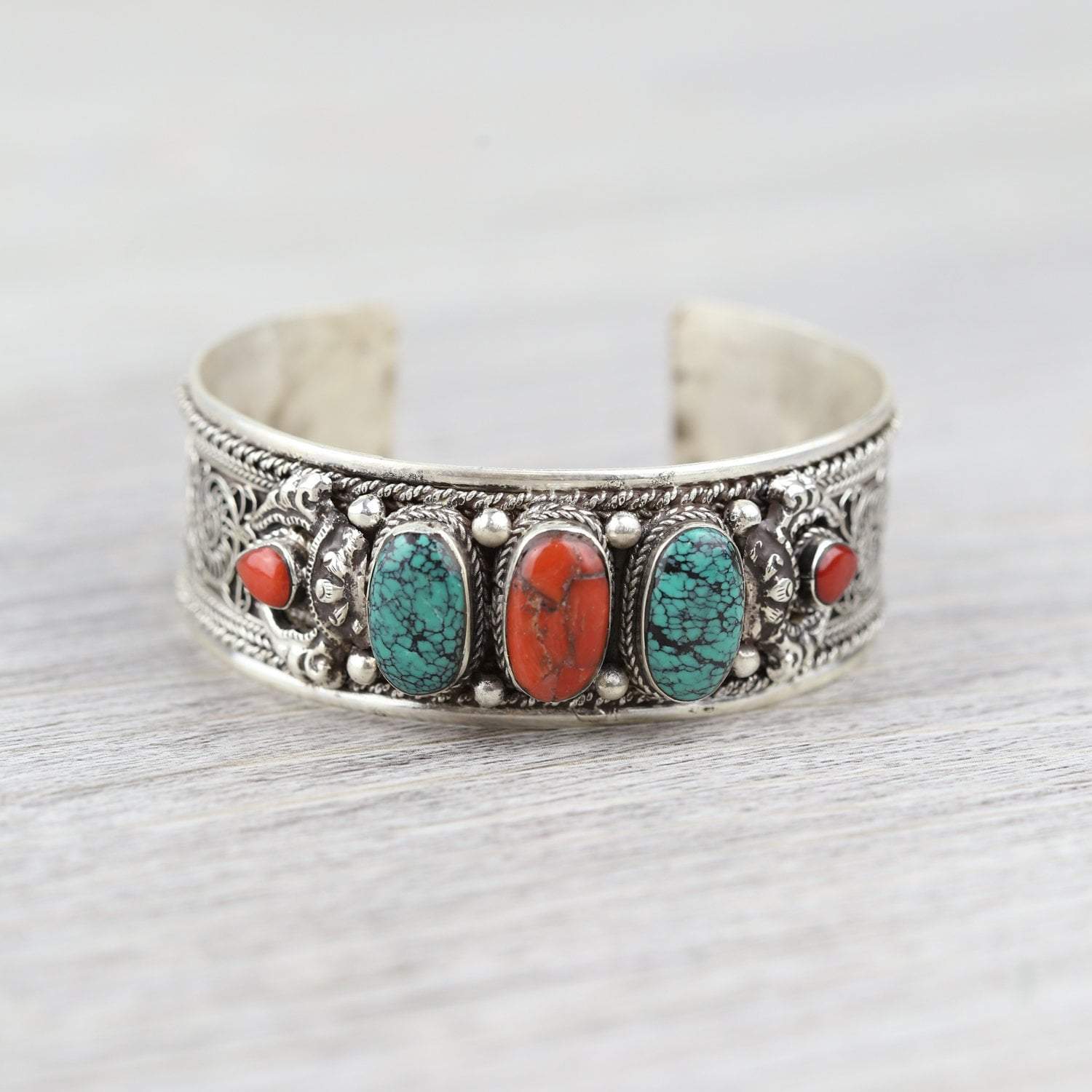 • This exquisite cuff bracelet is handmade in Nepal based on vintage Tibetan designs.