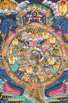 This thangka is done entirely by hand on cotton canvas using natural mineral and vegetable pigments with 24K gold details.  The complicated designs, intricate brushstrokes, and extraordinary detail make these thangkas genuine works of art.  Comes unframed and ready for Western style framing of your choosing.