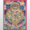 • This thangka depicts a beautifully detailed Tibetan wheel of life and astrology calendar design filled with various deities, Tibetan animals, and beautiful scenery.  Each piece of the wheel depicts its own scene.