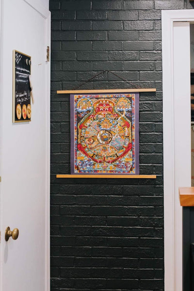 Thangka does not include a frame. We suggest shopping with your local frame or craft store to select a style that best suits you and your thangka! Looks great in a classic Western style photo frame or wooden magnetic poster hanger frames.