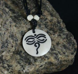 This natural water buffalo bone is hand etched with an image of the Buddha Eyes. These eyes represent the wisdom and compassion of the Buddha. This is quite a striking necklace. Handmade in Nepal. Pendant is 1 inch across. Size:Fully adjustable.