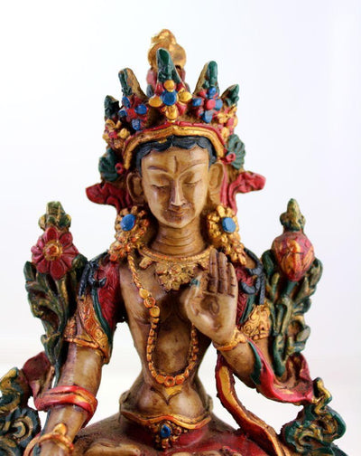 This hand painted statue is made of natural resins and hand cast into a gorgeous White Tara statue Size:6 Inches Tall