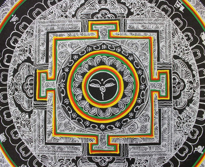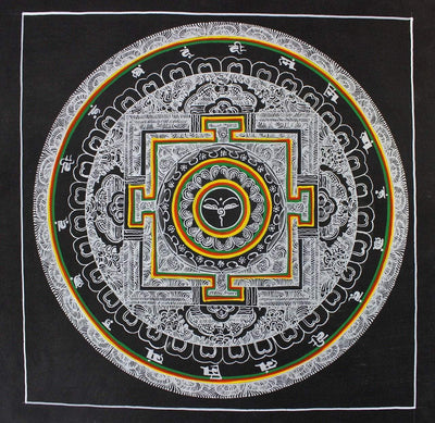 Our new thangka makers continue to send us amazing work! This mandala is handpainted with silver paint. Remarkable detail!